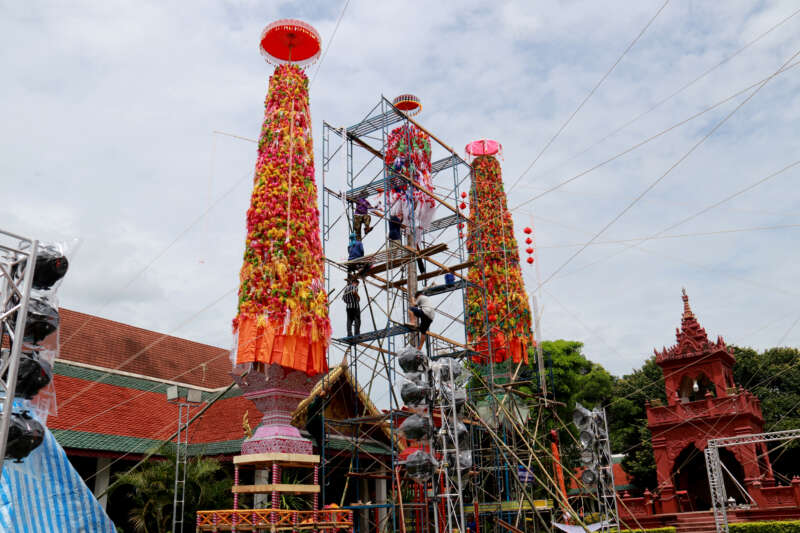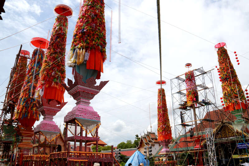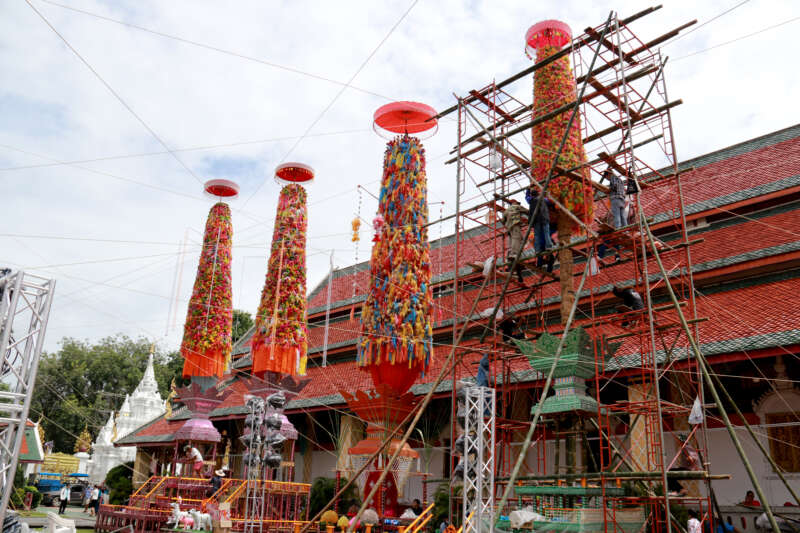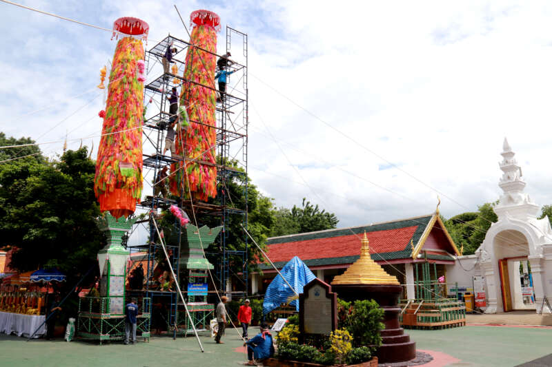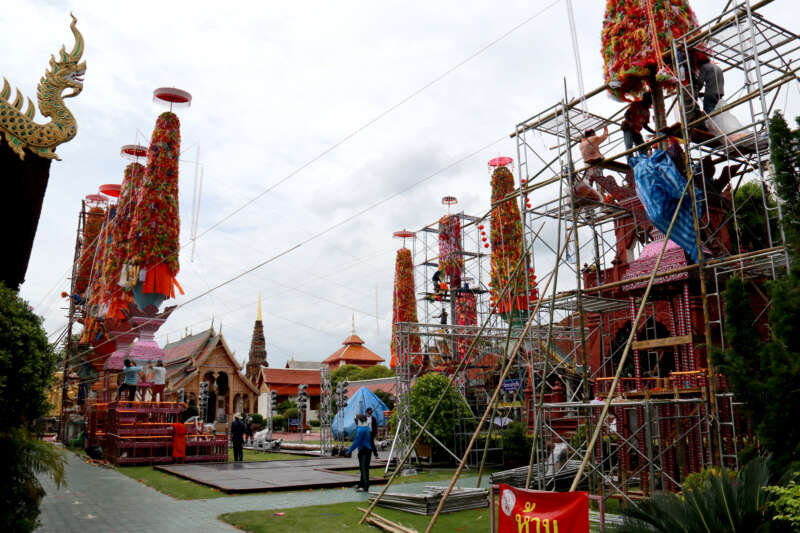 คณะศรัทธาจากคุ้มวัดต่างๆ ร่วมกันประดับตกแต่งต้นสลากย้อมเมืองลำพูน หนึ่งเดียวในโลก เพื่ออวดโฉมให้กับประชาชนและนักท่องเที่ยวได้ชมความยิ่งใหญ่และสวยงาม เริ่ม 27 สิงหาคม 2563 นี้