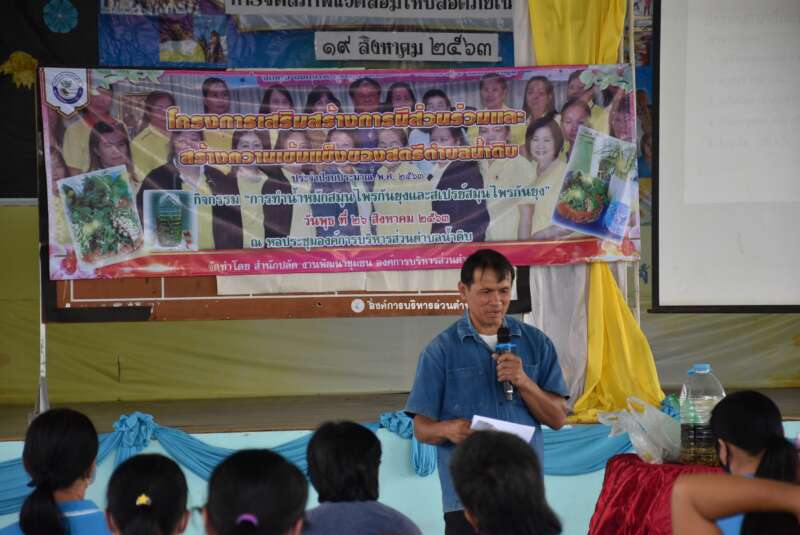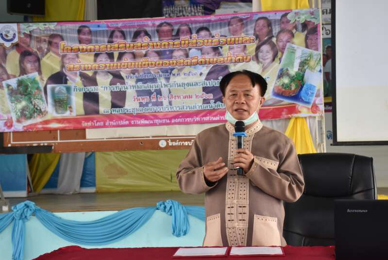 “มงคล หมื่นอภัย” นายก อบต.น้ำดิบ เป็นประธานเปิดโครงการเสริมสร้างการมีส่วนร่วมและสร้างความเข้มแข็งของสตรีตำบลน้ำดิบ กิจกรรม “การทำน้ำหมักสมุนไพรกันยุงและสเปรย์สมุนไพรกันยุง”