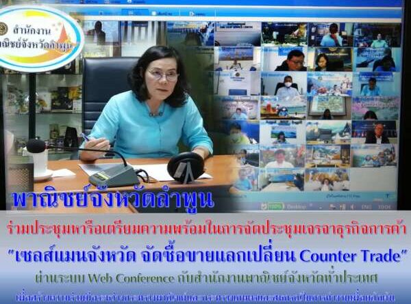 “นิยดา หมื่นอนันต์” พาณิชย์จังหวัดลำพูน ร่วมประชุมหารือเตรียมความพร้อมในการจัดประชุมเจรจาธุรกิจการค้า “เซลส์แมนจังหวัด จัดซื้อขายแลกเปลี่ยน Counter Trade” ผ่านระบบ Web Conference