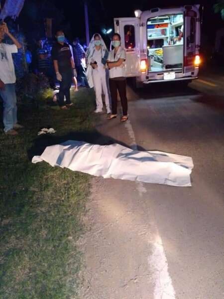 จูงจักรยานข้ามถนนตอนหัวค่ำ มองไม่เห็นถูกรถกระบะชนเสียชีวิต