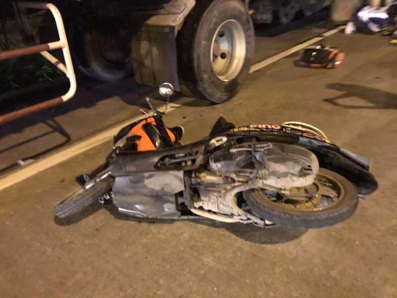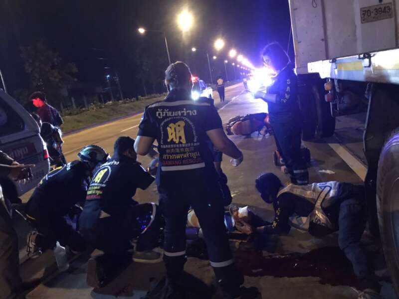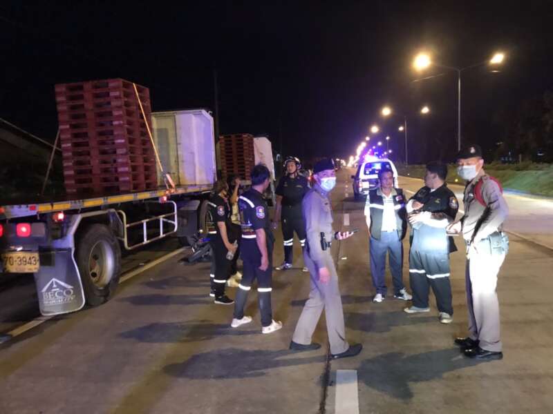 ไฟสว่างแต่หนุ่มวัย 37 ปี มองไม่เห็นรถพ่วงจอดเสีย ขับ จยย.ชน อากาสาหัส