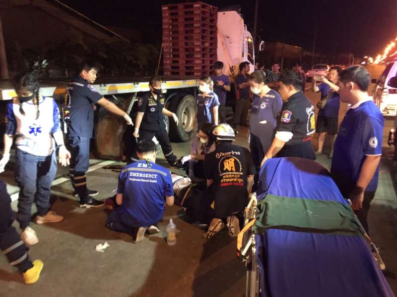 ไม่รู้ใครผิดใครถูก แต่ชายวัย 37 ปี เจ็บสาหัส หลังขับ จยย.พุ่งใส่รถบรรทุกพ่วงจอดเสียริมถนน