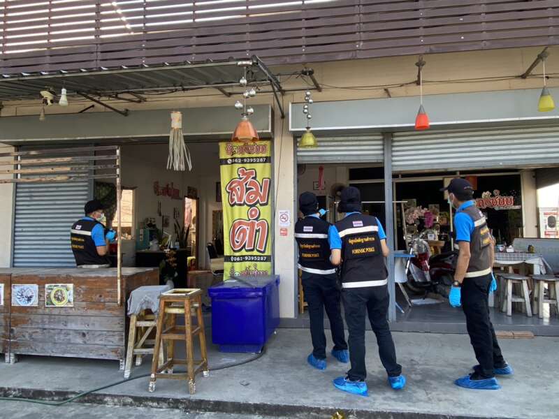 ด้านพันตำรวจเอก พชรพล วงศ์รจิต รอง ผู้บังคับการตำรวจภูธร จ.ลำพูน เปิดเผยว่าทางผู้บังคับการตำรวจภูธร จ.ลำพูน ได้กำชับให้คลี่คลายคดีนี้ให้ชัดเจน จากการตรวจสอบที่เกิดเหตุเบื้องต้นไม่พบร่องรอยการต่อสู้และพบอุปกรณ์ฆ่าตัวตายเช่นเตาอั้งโล่ ถังแก๊ส และพบว่ามีการใช้สายไฟพันพนิ้วมือ พ่อ กับแม่ และพ่อได้ใช้มืออีกข้างแตะลูกไว้ นอกจากนี้ผู้ตายเขียนจดหมายลาตายระบุว่าเกิดจากปัญหาเศรษฐกิจผู้ตายพยายามประคับประครองร้านให้อยู่ได้ตั้งแต่การแพร่ระบาดเชื้อโควิด