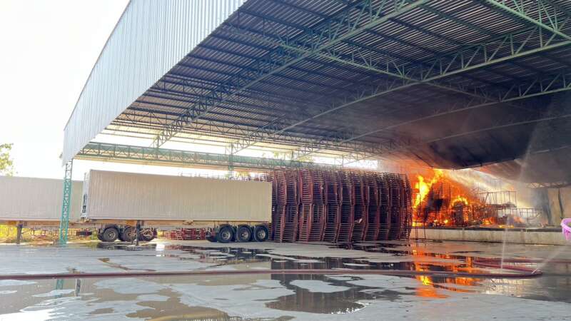 ไฟไหม้ห้องเย็นนานกว่า 3 ชั่วโมงวอดเสียหายร่วมร้อยล้าน ระดมรถดับเพลิงกว่า 20 คันเอาไม่อยู่