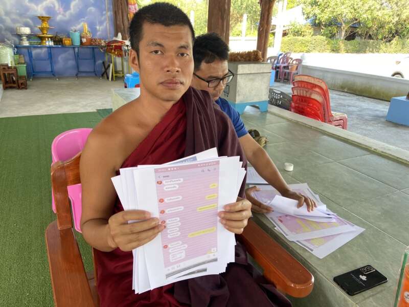 ซึ่งชายดังกล่าวก็ทักแซทมาอีกว่าเดือดร้อนจริงๆขอเงินใช้จำนวน 6,000 บาท ทางอาตมาจึงตอบแซทว่าไม่โอเค ไม่มีเงิน สรุปแล้วถ้าเดือดร้อนจริงๆอาตมาจะช่วยเหลือจำนวน 2,000 บาท ที่ขาดไปให้หาเอาเอง อาตมาช่วยได้แค่นี้ แล้วชายดังกล่าวตอบแซทมาว่า เพื่อเป็นการตอบแทนบุญคุณได้ส่งคลิปชายร่วมเพศชายและภาพลามกอนาจารมาให้ หลังจากได้ส่งคลิปลามกมาให้แล้ว แซทมาว่า ต้องการเงิน 20,000 บาท ให้โอนเข้าบัญชี หากไม่ให้จะนำแชทขณะพูดคลิปลามกนี้ที่ส่งให้ท่านนำไปเผยแพร่และสื่อมวลชนด้วย ทางอาตมาจึงขอเวลาหาเงินก่อน