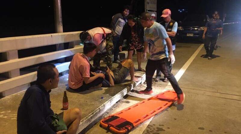 เจ้าหน้าที่ตำรวจชุดสืบสวน สภ.เมืองลำพูนคุมตัวผู้ต้องหาไล่ร้ายตกน้ำกวงดับทำแผน หลังนั่งดื่มเหล้าด้วยกันแล้วพูดผิดหูส่วนเพื่อนร่วมก่อเหตุยังหลบหนีเตรียมออกหมายจับวันนี้