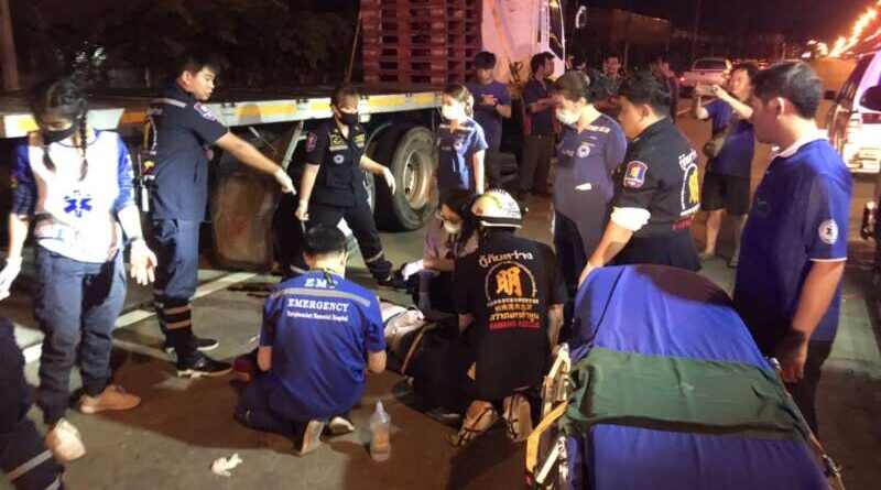 ไม่รู้ใครผิดใครถูก แต่ชายวัย 37 ปี เจ็บสาหัส หลังขับ จยย.พุ่งใส่รถบรรทุกพ่วงจอดเสียริมถนน